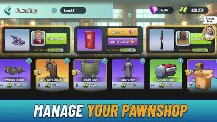 Izgradite svoj poslovni san od nule i proširite ga u masivno carstvo. Upravljajte sopstvenom zalagaonicom, sakupljajte vredne predmete i pretvorite svaku pobedu u profitabilnu investiciju. Kao vešt poslovni tajkun, transformisaćete svoju zalagaonicu u prosperitetnu imperiju pametnim ulaganjima. Istovremeno, oblikujte svoj grad, pretvarajući ga iz malog naselja u užurbano središte. Kombinujte uzbuđenje izgradnje sa strateškim elementima tajkunske igre, stvarajući vibrantnu metropolu i jačajući svoju reputaciju moćnog biznismena. Uživajte u zaraznoj „idle" igri, gde vaše carstvo nastavlja da raste i dok ste odsutni.