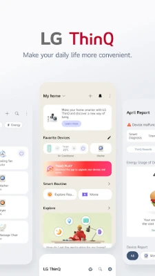 Unapredite svoje uređaje i prilagodite ih svom životnom stilu uz LG ThinQ Play. Ova funkcija vam omogućava da preuzimate raznovrsne aplikacije i dodajete nove karakteristike postojećim proizvodima, čineći ih pametnijim i funkcionalnijim. Kreirajte inteligentne rutine koje se automatski prilagođavaju vašim potrebama – neka se svetla i prečišćivač vazduha uključe kada je vreme za buđenje, ili neka se uređaji isključe radi uštede energije dok ste na odmoru. Pored toga, pratite potrošnju energije vašeg domaćinstva; uporedite je sa komšijama i postavite ciljeve za efikasnije korišćenje resursa uz pomoć energetskog nadzora, dobijajući obaveštenja koja vam pomažu da štedite.