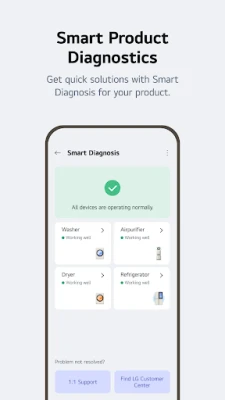 LG ThinQ vam donosi i direktnu podršku za vaše proizvode. Funkcija Smart Diagnosis omogućava brzu proveru statusa uređaja, a ukoliko je potrebna detaljnija intervencija, možete lako zakazati posetu profesionalnog servisera. Za sva pitanja o LG ThinQ kućnim aparatima, tu je i "Četovanje sa LG-jem", podržano veštačkom inteligencijom, koje pruža prilagođene odgovore specifične za stanje i model vašeg proizvoda. Uživajte u celovitom rešenju koje objedinjuje kontrolu, optimizaciju i neprestanu podršku, prilagođavajući se vama i vašem savremenom načinu života.