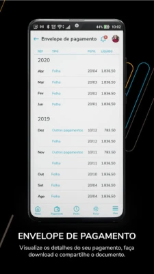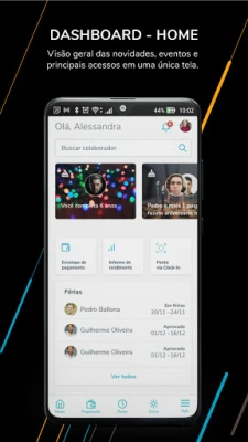 TOTVS Meu RH donosi revolucionaran način upravljanja radnim vremenom i pristupom važnim informacijama direktno sa vašeg mobilnog uređaja. Zaposleni sada mogu lako beležiti svoj dolazak i odlazak uz preciznu geolokaciju, bez potrebe za fizičkim registratorima, gde god se nalazili. Aplikacija omogućava trenutni uvid u platne liste, podnošenje zahteva za godišnji odmor i pregled izveštaja o prihodima. Svi podaci su organizovani na personalizovanim kontrolnim tablama koje prikazuju nedavne aktivnosti, nadolazeće isplate i rođendane kolega, pružajući preglednost i lakoću pristupa ključnim HR uslugama.