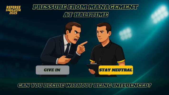 Izgradite svoju sudijsku karijeru od temelja, stičući iskustvo i gradeći reputaciju koja će vas voditi ka vrhunskim ligama. Sa preko 60 jedinstvenih fudbalskih klubova, otvaraju vam se vrata za suđenje mečeva sve većeg značaja. Ali put do vrha nije uvek čist – suočićete se sa primamljivim ponudama za podmićivanje. Da li ćete prihvatiti novac i rizikovati svoj ugled, ili ćete ostati nepokolebljivi u svojoj pravednosti? Vaše odluke definišu vaš put i utiču na vaše finansije, čineći svaki izbor težim i važnijim.