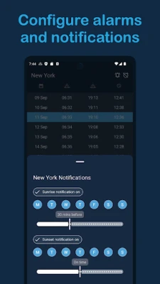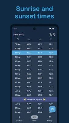 Zamislite da imate ličnog vodiča za svakodnevni ples sunca, direktno u svom džepu. Ova inovativna aplikacija transformiše način na koji doživljavate izlaske i zalaske sunca. Zaboravite na propuštene trenutke – uz precizne dnevne alarme i obaveštenja, uvek ćete biti spremni da dočekate svitanje ili ispratite sumrak, bilo gde da se nalazite. Bilo da ste ranoranilac, ljubitelj prirode ili fotograf koji juri savršeno svetlo, ova aplikacija je vaš nezamenljiv saputnik koji vam donosi ritam prirode na dohvat ruke.
