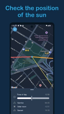 Pored toga što vas obaveštava o dolasku i odlasku sunca, aplikacija vam otvara vrata ka detaljnom istraživanju i planiranju. Zavirite u interaktivne mape i vizualizujte poziciju sunca u realnom vremenu na bilo kojoj tački zemaljske kugle. Planiranje putovanja, fotografisanja ili posebnih događaja postaje jednostavno uz funkciju odabira datuma, omogućavajući vam da proverite vremena izlaska i zalaska sunca za bilo koji datum u prošlosti ili budućnosti. Sa opcijom ručne pretrage, možete istražiti sunčane cikluse za destinacije širom sveta, pružajući vam potpunu kontrolu i uvid.