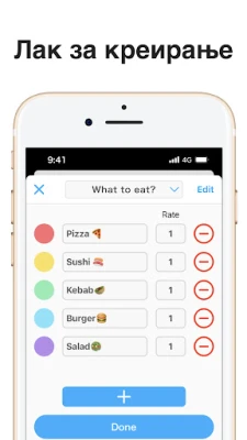 Da li ste umorni od beskrajnog razmišljanja ili bacanja novčića kad god treba da donesete odluku? Zaboravite na dileme i unesite zabavu u svaki izbor uz vašu novu, interaktivnu aplikaciju za rulet! Bilo da birate šta ćete ručati, rešavate ko je sledeći na redu za igru, ili izvlačite srećne dobitnike nagrada, ova aplikacija pretvara svakodnevne izbore u uzbudljivu avanturu. Kreirajte sopstvene točkove sa opcijama koje vama odgovaraju i pustite da se sreća zavrti umesto vas, čineći život jednostavnijim i zabavnijim.
